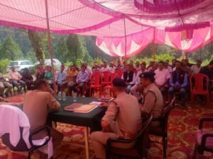 उत्तरकाशी। सोमवार को कोतवाली मनेरी में आयोजित “थाना दिवस” कार्यक्रम में पुलिस उपाधीक्षक उत्तरकाशी जनक सिंह पंवार ने वरिष्ठ नागरिकों, जनप्रतिनिधियों और गणमान्य लोगों को साइबर अपराध, नशा और सामाजिक कुरीतियों के प्रति जागरूक किया। उन्होंने लोगों की समस्याएं सुनी और प्रभावी पुलिस व्यवस्था का भरोसा दिलाया। उपस्थित लोगों को साइबर ठगों से सतर्क रहने की हिदायत दी गई तथा साइबर हेल्पलाइन 1930 और डायल 112 की जानकारी दी गई। प्रभारी निरीक्षक मनोज आसवाल ने नशे के दुष्प्रभावों पर चर्चा करते हुए कहा कि नशा युवाओं का जीवन बर्बाद करता है और इसे रोकने के लिए समाज की सहभागिता आवश्यक है। कार्यक्रम में वरिष्ठ उपनिरीक्षक सुखपाल सिंह, क्षेत्र के वरिष्ठ नागरिक, जनप्रतिनिधि, ग्राम चौकीदार और अन्य गणमान्य लोग उपस्थित रहे।