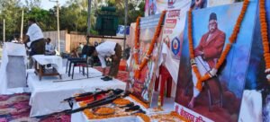 शताब्दी वर्ष पर स्वयंसेवकों ने पथ संचलन कर किया शस्त्र पूजन