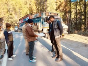 पौड़ी। थलीसैंण से बीरोंखाल मोटर मार्ग पर जिला प्रशासन एवं परिवहन विभाग ने संयुक्त जांच अभियान चलाया। अभियान का नेतृत्व उपजिलाधिकारी थलीसैंण कृष्णा त्रिपाठी एवं सहायक संभागीय परिवहन अधिकारी मंगल सिंह ने किया। जांच के दौरान 14 वाहनों की जांच की गई, जिनमें से 3 वाहनों के चालान किए गए। कुछ वाहन बिना वैध कागजात, टैक्स एवं हिल ट्रैवलिंग सर्टिफिकेट के संचालित पाए गए। इसके अलावा हेलमेट न पहनने वाले दोपहिया चालकों पर भी कार्रवाई की गई। प्रशासन ने स्पष्ट किया कि सड़क सुरक्षा से कोई समझौता नहीं किया जाएगा।