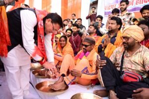 इससे पूर्व मुख्यमंत्री ने त्रिशूल चौक का लोकार्पण किया उससे पूर्व उन्होंने कांवड़ियों की पैर पखारे एवं उनको अंगवस्त्र व पुष्प माला भेंट कर उनका अभिवादन किया, इसके उपरांत त्रिशूल चौक से सरस मेला कार्यक्रम स्थल गांधी पार्क तक आयोजित शिव बारात में प्रतिभाग किया। शिव बारात में मुख्यमंत्री का विभिन्न संगठनों व जनता द्वारा फूलमाला, पुष्पवर्षा कर भव्य स्वागत किया।