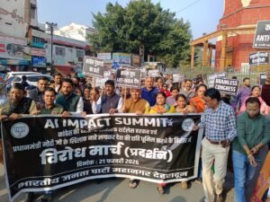 एआई सम्मेलन में कांग्रेस कार्यकर्ताओं के विरोध के बाद में भाजपा ने निकाला विरोध मार्च