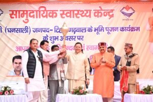 देहरादून/टिहरी। मुख्यमंत्री पुष्कर सिंह धामी ने गुरूवार को जनपद टिहरी के घनसाली में 41.21 करोड़ की विभिन्न विकास योजनाओं का लोकार्पण एवं शिलान्यास किया, जिसमें 13.43 करोड़ रूपए की 03 योजनाओं का लोकार्पण एवं 27.78 करोड़ रूपए की 05 योजनाओं का शिलान्यास शामिल है। साथ ही प्राथमिक स्वास्थ्य केन्द्र, पिलखी को सामुदायिक स्वास्थ्य केन्द्र के रूप में उच्चीकरण किये जाने का भी शिलान्यास किया। इस अवसर पर मुख्यमंत्री ने अस्पताल हेतु भूमि दान करने वाले कृष्णा गैरोला एवं उनके परिवार को भी सम्मानित किया।