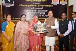 देहरादून। मुख्यमंत्री पुष्कर सिंह धामी ने रविवार को मुख्य सेवक सदन, देहरादून में अंतर्राष्ट्रीय महिला दिवस के अवसर पर वरिष्ठ मातृशक्ति का सम्मान नारी तू नारायणी कार्यक्रम में प्रतिभाग किया। इस दौरान मुख्यमंत्री ने शिक्षा, समाज सेवा, उद्यमिता, पर्यावरण संरक्षण, कृषि, संस्कृति, जल संरक्षण जैसे विभिन्न क्षेत्रों में सर्वश्रेष्ठ कार्य करने वाली राज्यभर से 38 वरिष्ठ महिलाओं को सम्मानित किया।