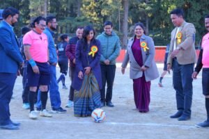 श्रीनगर। कंडोलिया खेल मैदान में चार दिवसीय राज्य स्तरीय आमंत्रण फुटबॉल प्रतियोगिता 2025 का भव्य शुभारंभ जिलाधिकारी स्वाति एस. भदौरिया व नगर पालिकाध्यक्ष हिमानी नेगी ने किया। उद्घाटन मैच पौड़ी और बागेश्वर की टीमों के बीच खेला गया। ढोल-नगाड़ों और सांस्कृतिक कार्यक्रमों के बीच खिलाड़ियों का पारंपरिक स्वागत हुआ। जिलाधिकारी ने कहा कि ऐसी प्रतियोगिताएँ युवाओं में खेल के प्रति उत्साह व आत्मविश्वास बढ़ाती हैं। नगर पालिकाध्यक्ष ने खेल संस्कृति को बढ़ावा देने पर जोर दिया। प्रतियोगिता में 14 टीमें शामिल हैं और खिलाड़ियों को नशा मुक्त भारत की शपथ दिलाई गई।