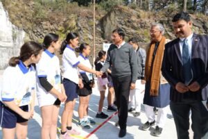 केंद्रीय मंत्री के आगमन पर सरस्वती शिशु मंदिर के छात्र-छात्राओं ने मांगलिक गीतों से स्वागत किया। दीप प्रज्ज्वलन के साथ महोत्सव का विधिवत उद्घाटन हुआ तथा सांसद खेल महोत्सव की टी-शर्ट व ट्रैकसूट का विमोचन किया गया। डॉ. मांडविया ने कहा कि सांसद खेल महोत्सव युवाओं को निष्पक्ष और पारदर्शी मंच प्रदान करेगा तथा यहां से निकलने वाली प्रतिभाएं भविष्य में अंतरराष्ट्रीय प्रतियोगिताओं में देश का प्रतिनिधित्व करेंगी। उन्होंने बताया कि जोशीमठ में 8 करोड़ रुपये की लागत से सिंथेटिक एथलेटिक ट्रैक का निर्माण कराया जा रहा है। सांसद गढ़वाल अनिल बलूनी ने पौड़ी को हाई एल्टीट्यूड ट्रेनिंग के लिए आदर्श बताते हुए क्षेत्र को ‘सेंटर ऑफ एक्सीलेंस’ के रूप में विकसित करने की मांग रखी। सांसद हरिद्वार त्रिवेंद्र सिंह रावत ने कहा कि यह महोत्सव युवाओं के लिए स्वर्णिम अवसर है। कार्यक्रम के दौरान केंद्रीय मंत्री व सांसदों ने खिलाड़ियों से भेंट कर स्वयं खेलकर उनका उत्साहवर्धन किया। आयोजन में जनप्रतिनिधि, अधिकारी और बड़ी संख्या में खिलाड़ी उपस्थित रहे।